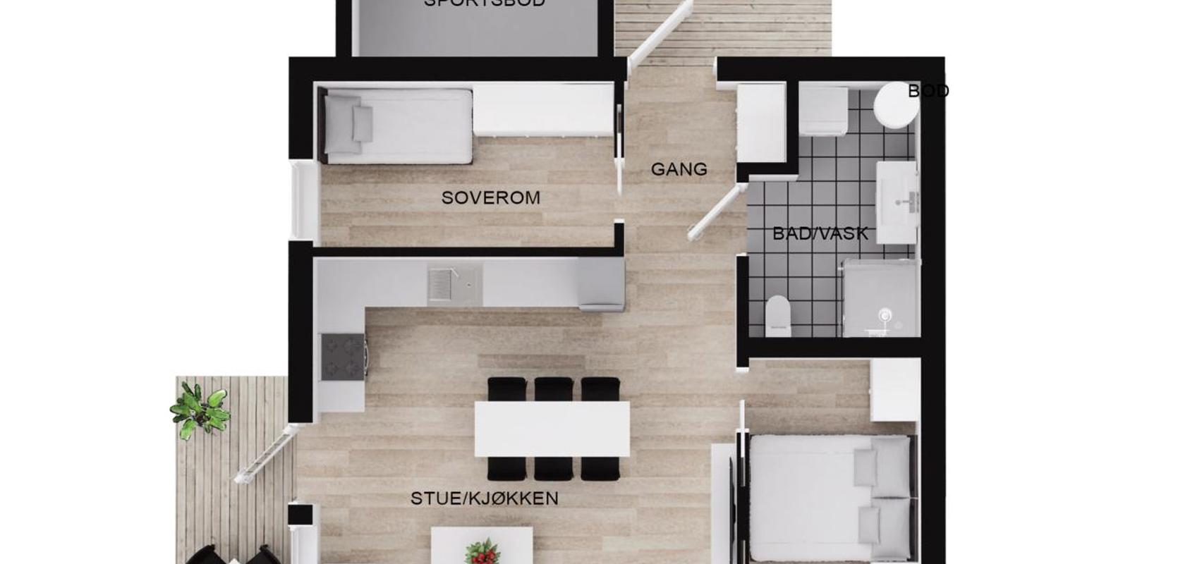 KVANT 2.0 - Arealeffektiv enebolig med to soverom